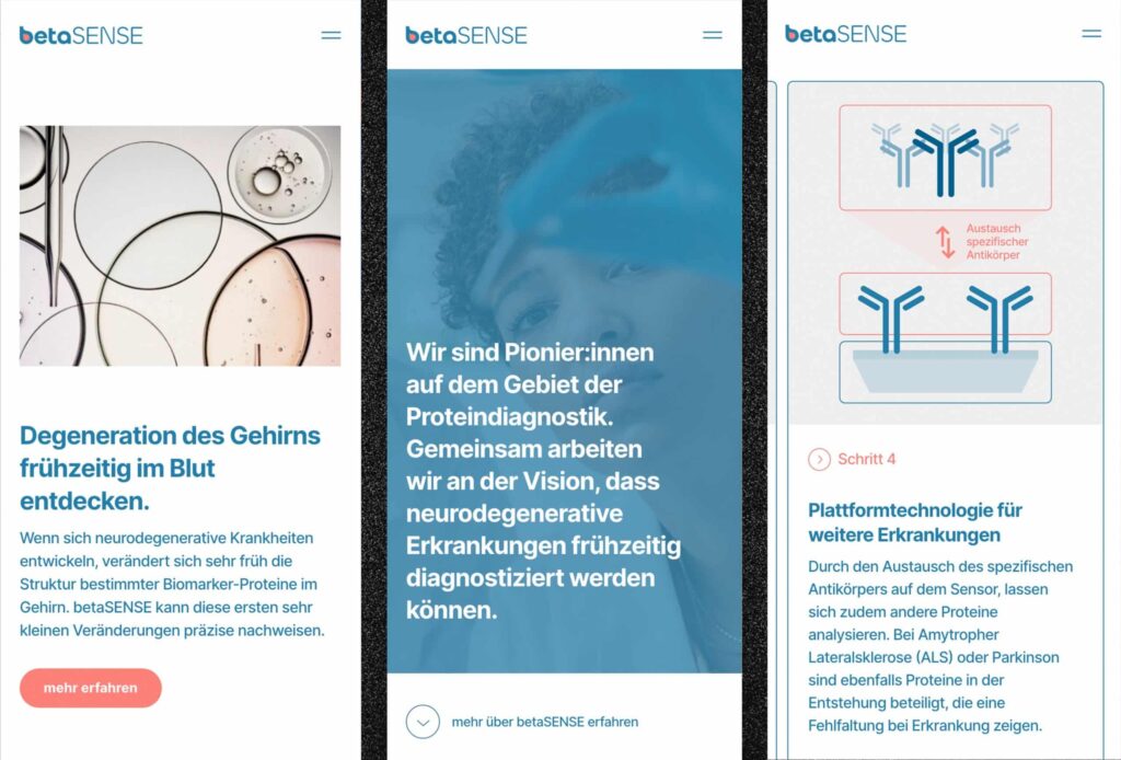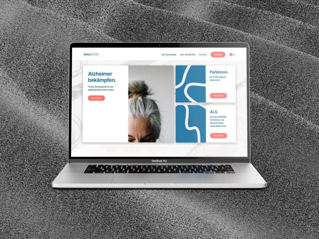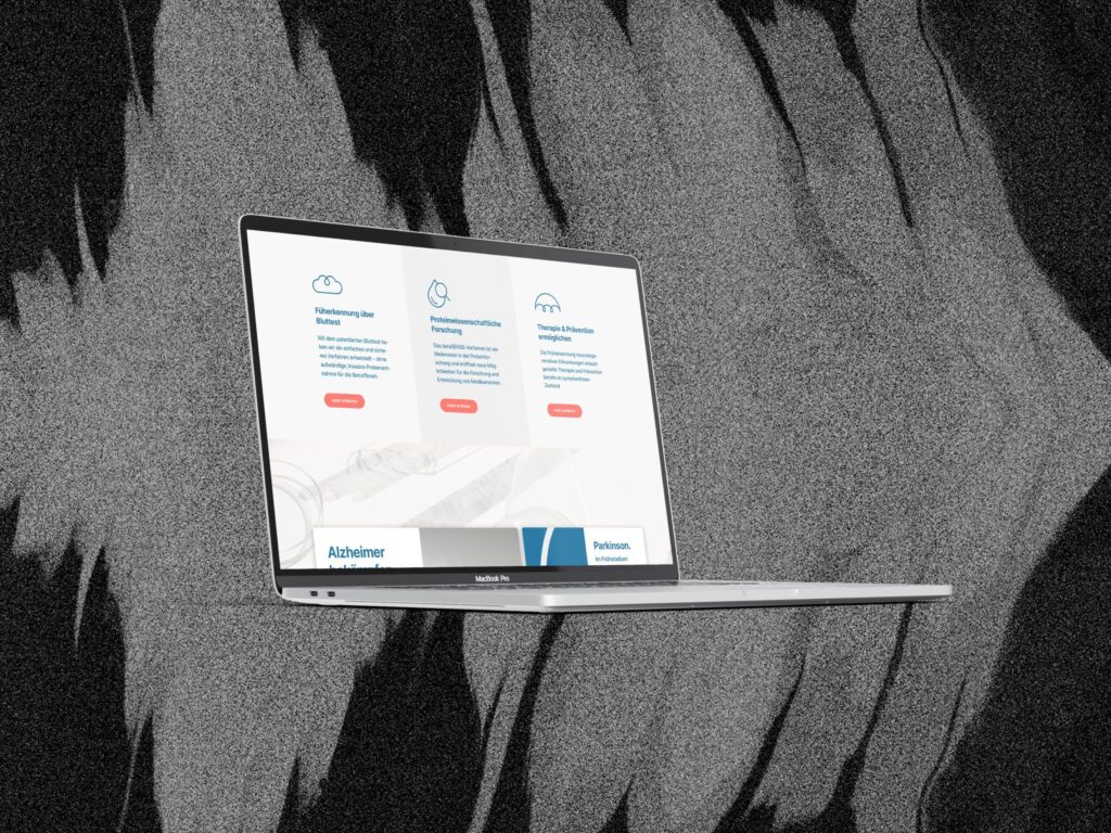 Corporate Design und Website für eine medizinische Innovation: die frühzeitige Diagnostik von neurodegenerativen Erkrankungen anhand einer einfachen Blutprobe.