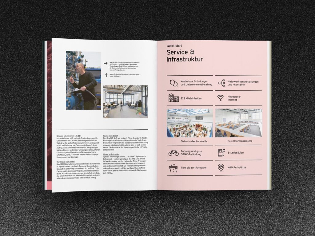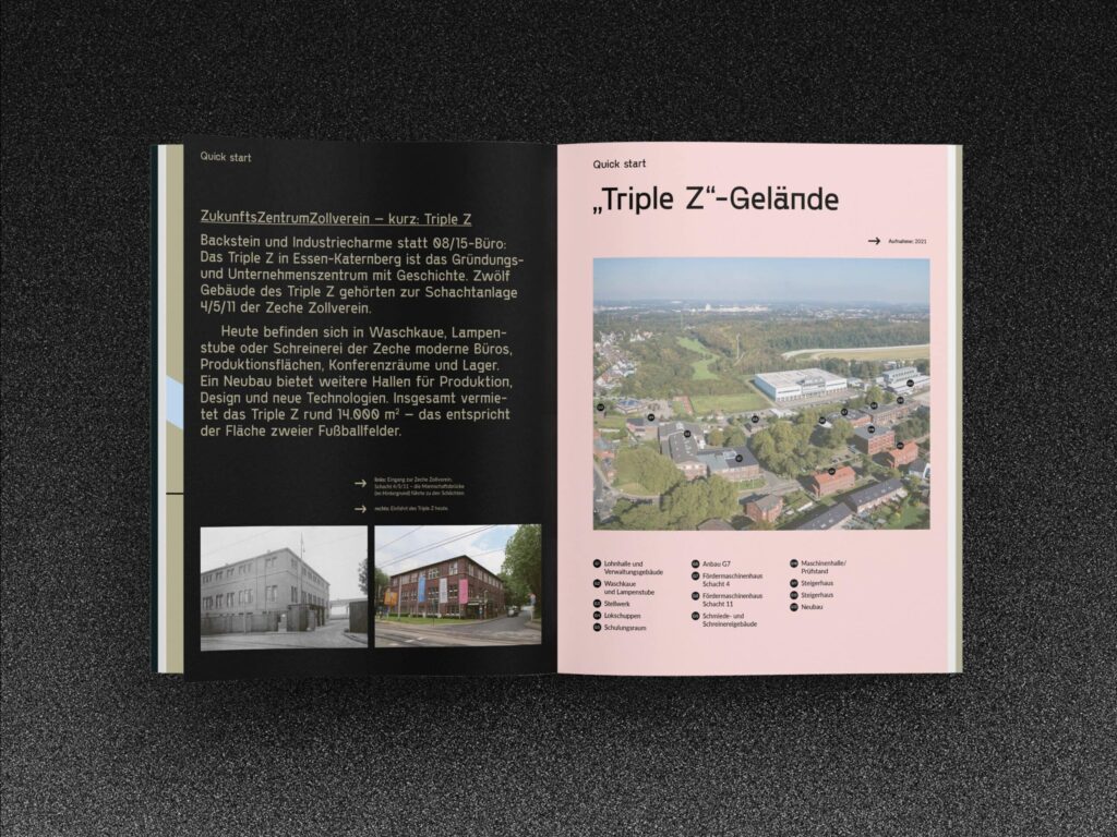 Das Zukunftszentrum Zollverein – kurz Triple Z – ist ein Gründungs- und Unternehmenszentrum auf Zeche Zollverein. Wir entwickelten ein neues Corporate Design.