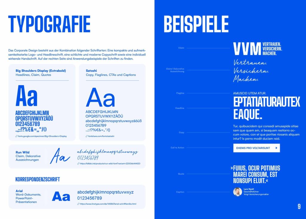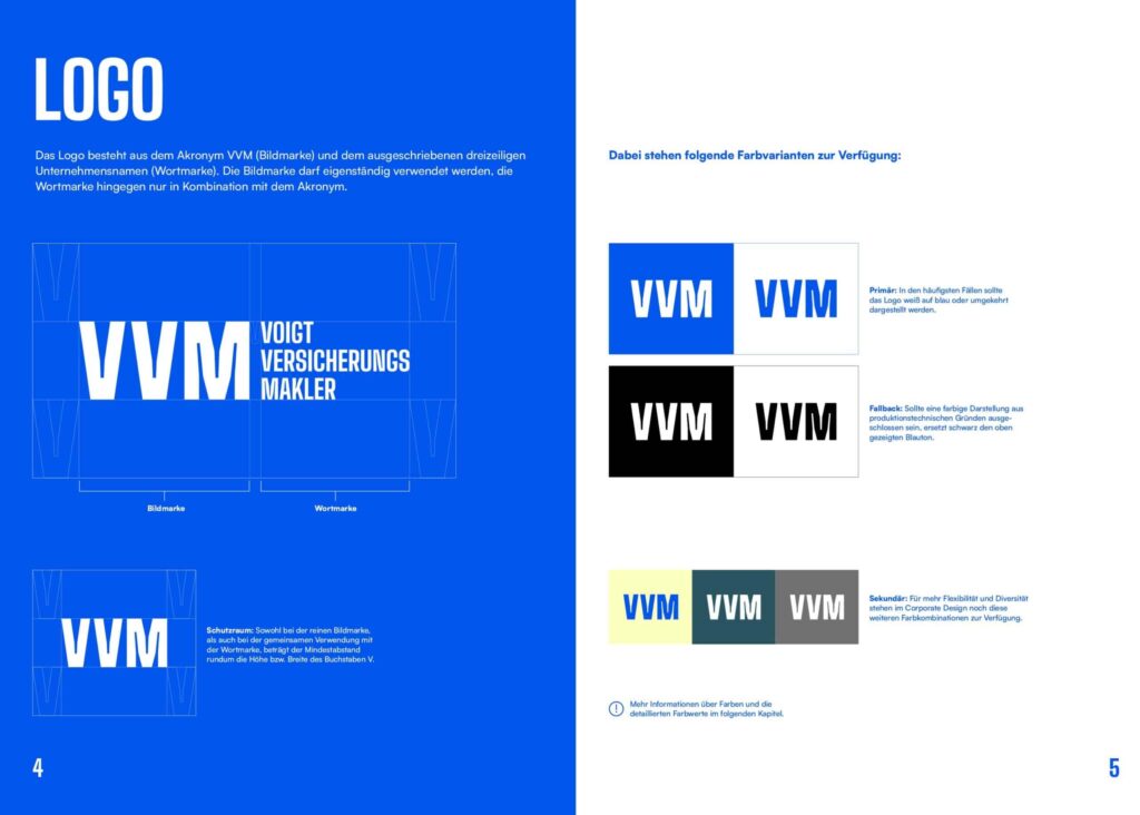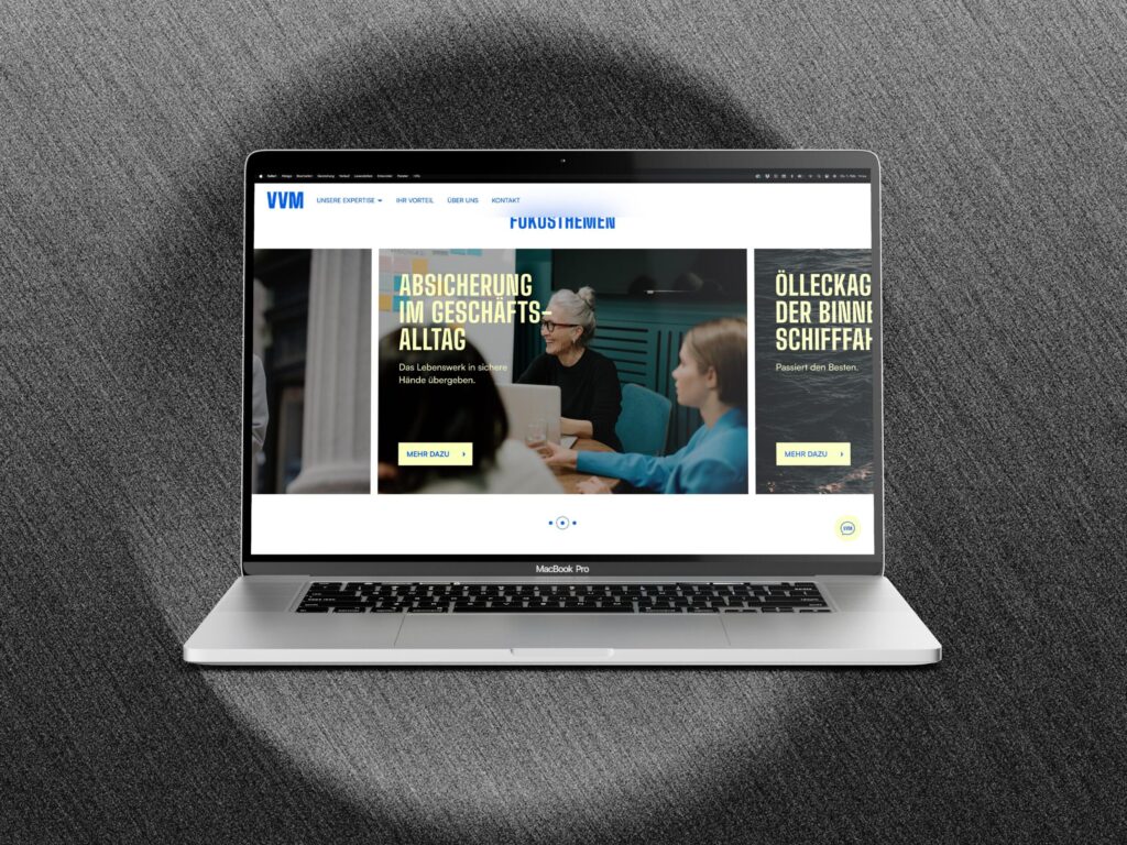 Corporate Design und Webdesign für Voigt Versicherungsmakler (kurz VVM) samt Animation: Aus dem Unternehmensnamen wird der durch die Meta Maniacs entwickelte Claim „Vertrauen. Versichern. Machen.“